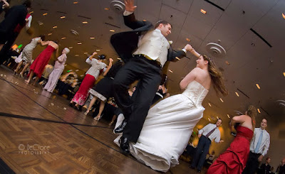 Even after a long day of wedding photography, I love to capture fun wedding dance pictures. To do great dance photography means you have to go that extra kilometer (or mile) even though your body is fatigued. What makes a truly compelling wedding Dance photograph isn’t just lighting and composition. The photographer must anticipate the action and look for expression. Some of my favorite venues for making wedding dance photographs are The Grand Hyatt in Denver, Cherry Hills Country Club and The Denver Country Club. The Grant Humphrey’s Mansion has a low ceiling which actually makes for interesting and easy lighting whilst the elegant Sanctuary Golf Course is a challenging but very rewarding dance venue. Tent lighting like at The Hudson Gardens always provides a nice bounce of even light but once you get outside the tent, the black night will suck up your light quickly. So having an assistant to carry a second and even a third light is a big advantage.